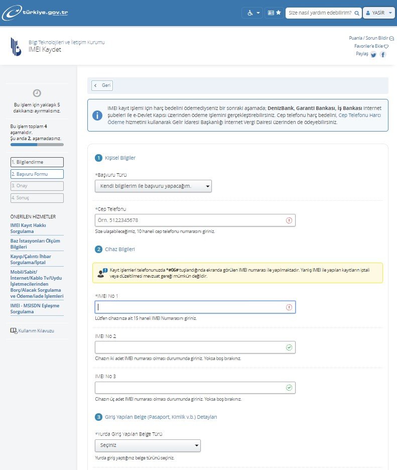 Telefonun kaydı sırasında kayıt harcı yatırmalısınız. Bu ödeme toplam 614 TL olarak belirlenmiştir. Belge istemediği için kaydı e-Devlet üzerinden gerçekleştirebilirsiniz.